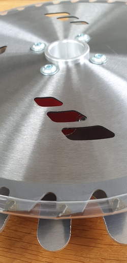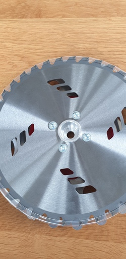 Una nueva y revolucionaria herramienta italiana, video, hoja de sierra circular, protector de tronco, adaptador universal para cortacésped giratorio, que se desarrolló para la eliminación rápida, suave y eficaz de esquejes en la base de los árboles, cerca del tronco (ciruela, pera, alma, albaricoque , avellanos, árboles ornamentales, etc.), el adaptador está equipado con una lámina de protección de tronco redondeada cortada con láser, que evita daños en la corteza y el tronco de las plantas. La hoja de sierra circular dentada extremadamente afilada y duradera de vidias permite una eliminación rápida y segura de las rebabas. Está hecho de material de aleación ligera de alta calidad, por lo que es muy ligero, solo pesa 1 kg. Accesorio UNIVERSAL, como disco para una hoja de sierra normal con la tuerca roscada de fábrica de la guadaña basculante. se puede fijar sin usar un inserto adicional. También se puede equipar con una arandela distanciadora, que permite colocar el disco de corte a mayor distancia del suelo. Está disponible en una versión con disco fijo de protección hoja-vástago fijable: UNI-SPOLLY PLUS. En este caso, la protección de la hoja de sierra no gira por inercia, sino solo en contacto, si es necesario. Esto permite una mayor precisión y una mejor visibilidad mientras se trabaja. Requisito mínimo de cortacésped oscilante: 1,5 caballo de fuerza-2 caballo de fuerza, motor explosivo.