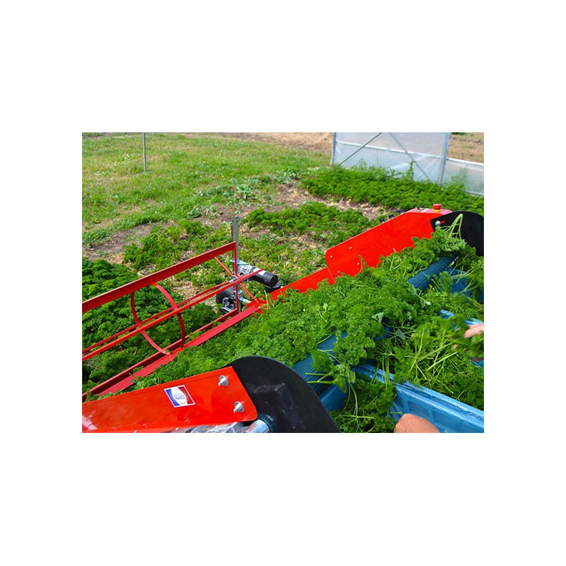 Es una máquina popular entre los cultivadores profesionales porque es fácil de usar, ergonómica y permite realizar el trabajo rápidamente. Una franja de 60 m se puede cosechar en 12 minutos (tiempo estimado).
