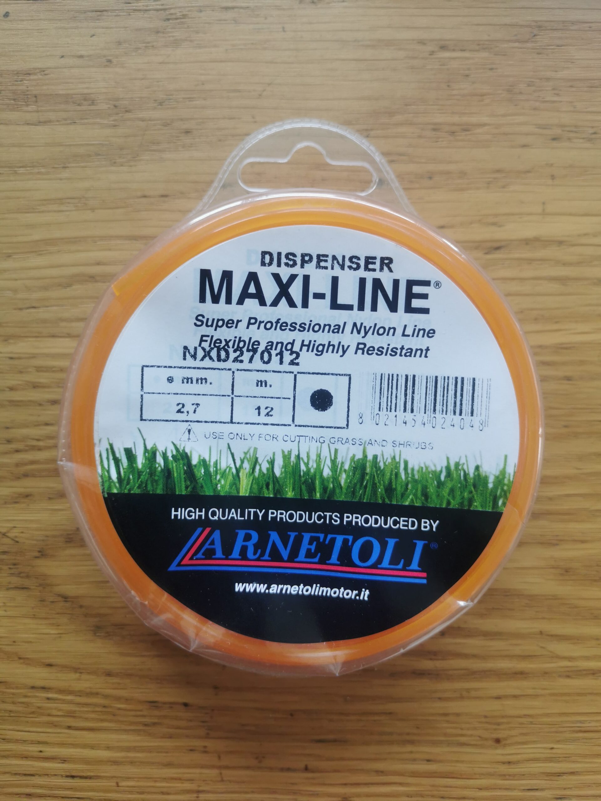 Súper profesional para cortacésped Arnetoli sedal. Perfil redondo de 2,7 mm de diámetro y 12 m de largo.