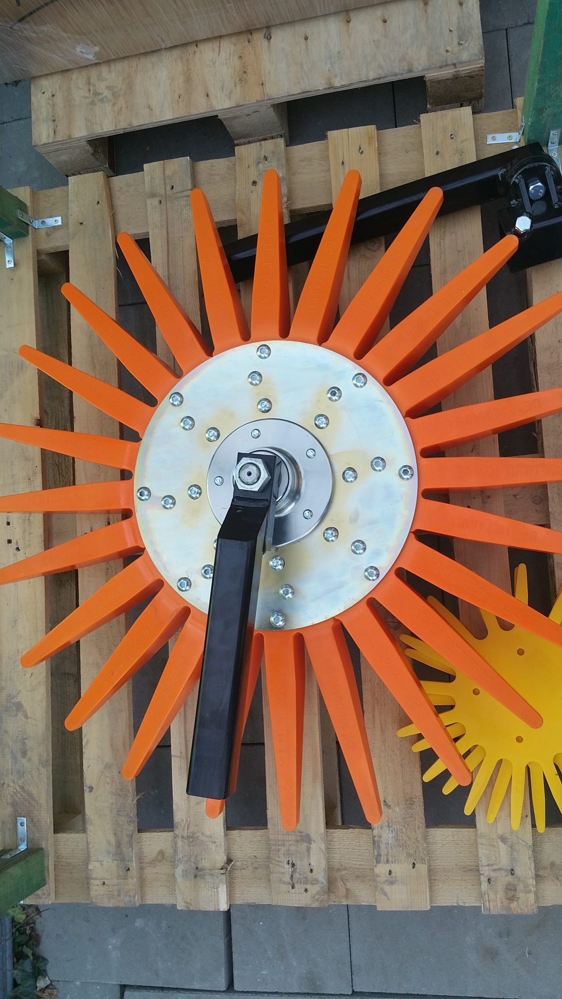 K.U.L.T. 540 mm de diámetro, dureza media, color amarillo (para suelos semisólidos, cuidadoso con los troncos de los árboles) 50x50x8 mm, sección de tallo reforzada con pinzas para huertos, ¡ahora con descuento!