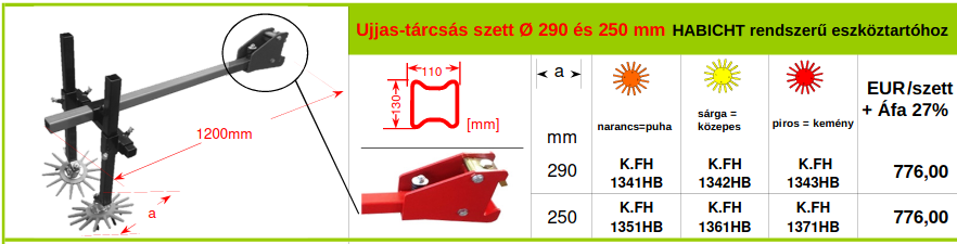 K.FH 1361HB: Conjunto de material blando amarillo (para suelos moderadamente ligados, sueltos, ligeros o normales, para todos los cultivos hortícolas) con disco KULT.