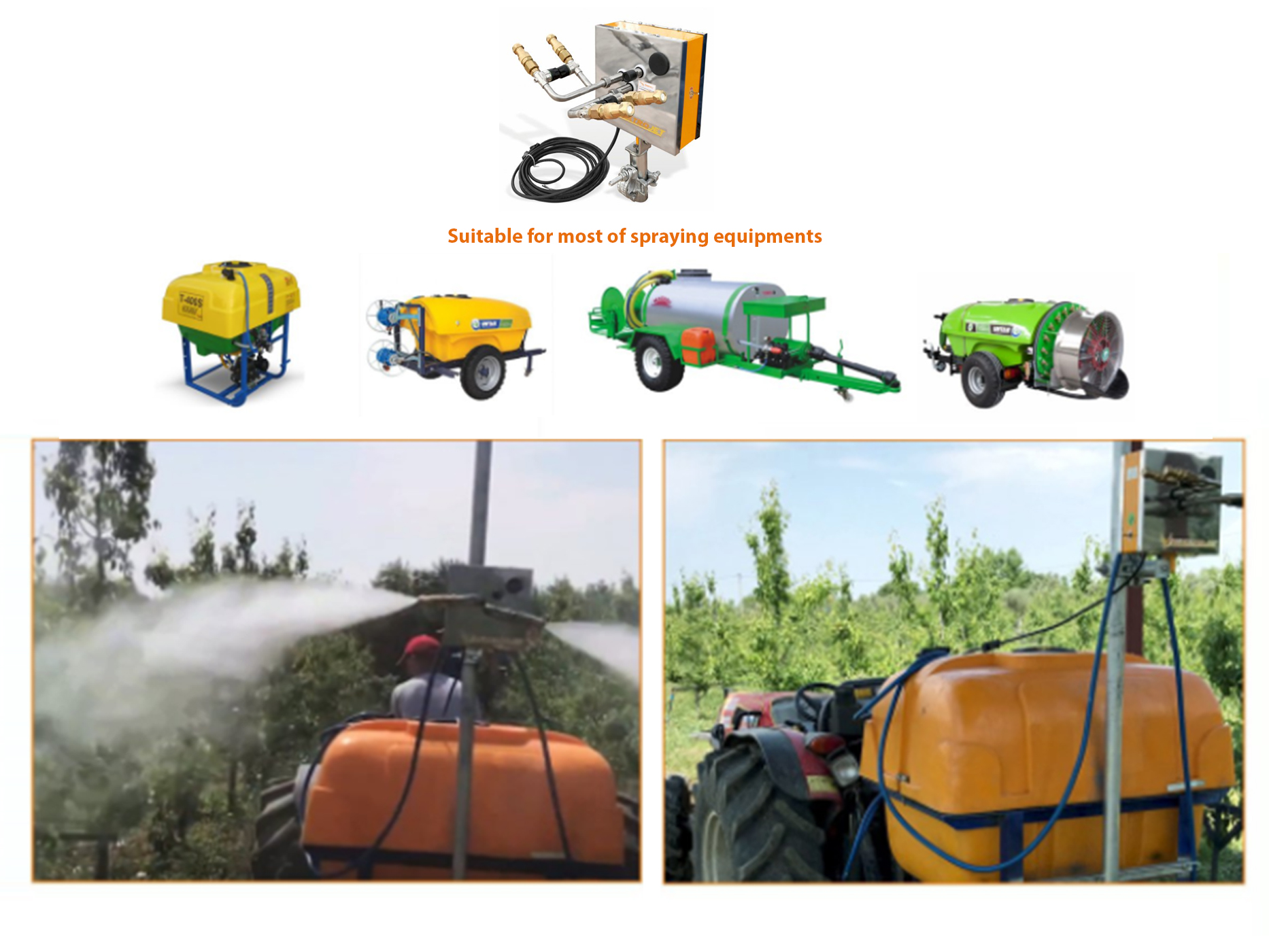 El pulverizador Elektrojet es un aparato eléctrico de 12 V con boquillas oscilantes verticales, especialmente diseñado para el tratamiento de árboles frutales. Distribuye con precisión compuestos de cobre, caolín, fertilizantes foliares y fitosanitarios tradicionales.