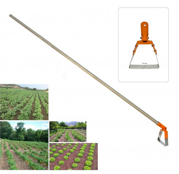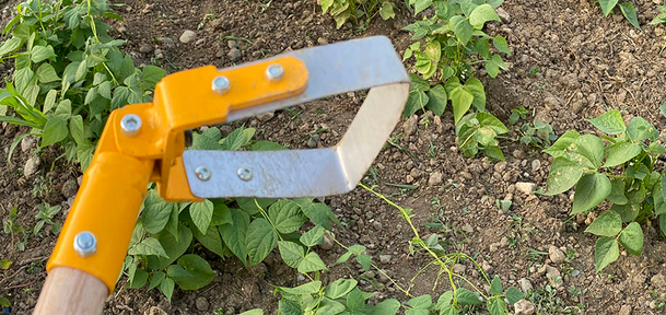 Debido a su tamaño, es excelente para deshierbar hortalizas, flores y alrededor de las raíces de hileras más estrechas, o incluso para cortar hortalizas de hojas jóvenes para la cosecha. Gracias a su cuerpo de azada en forma de delta, se puede realizar el deshierbe directamente en la base de la planta sin dañar las hojas.