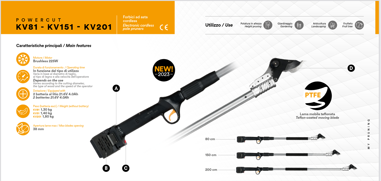 KV151 Podadora de altura Volpi con batería que se puede colocar en el mango