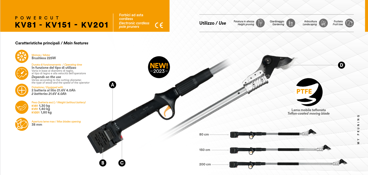 Gracias a su mango de 80 cm de largo, incluso las ramas con una altura de 2,1-2,3 metros son fácilmente accesibles.