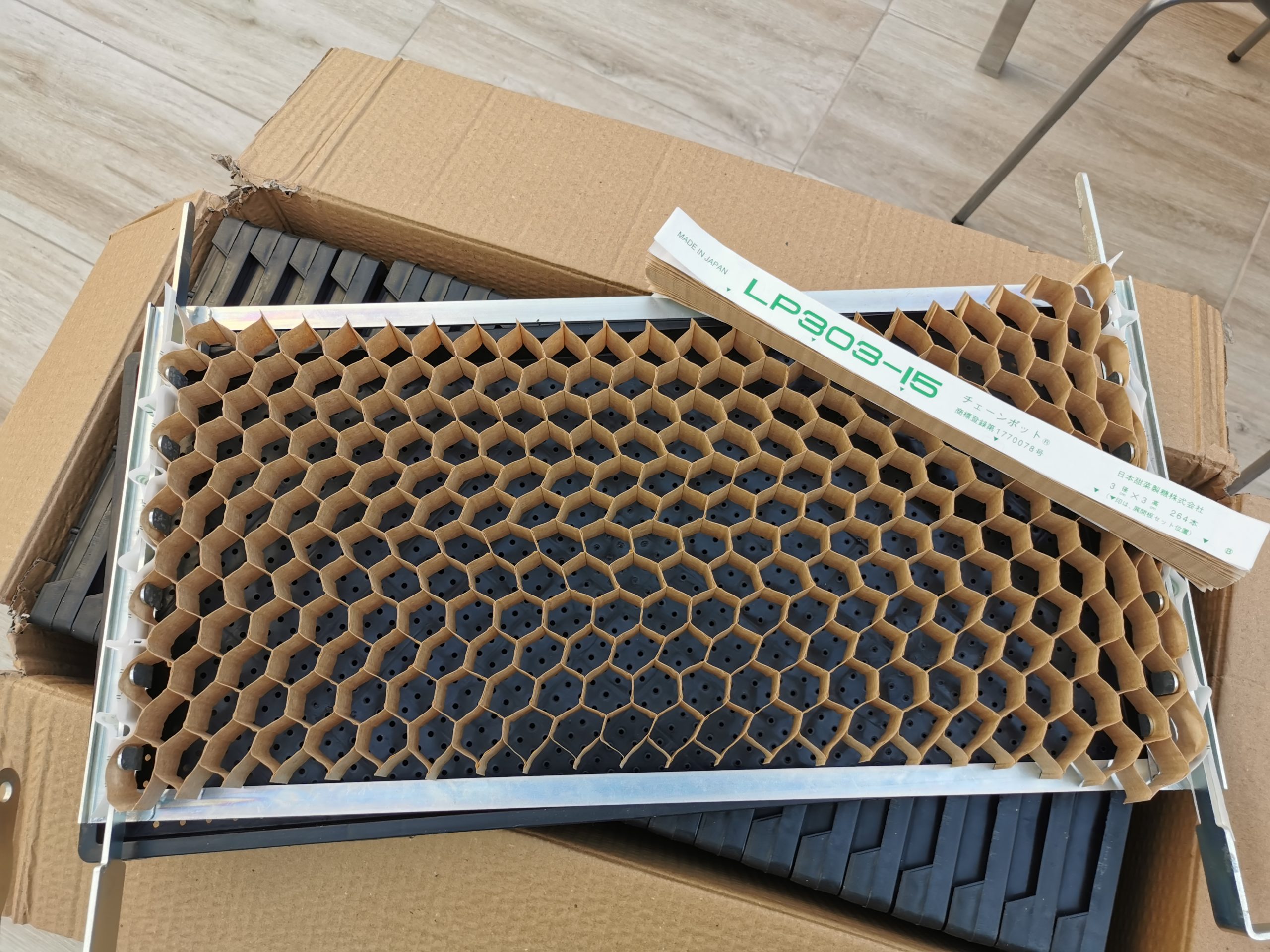 La gran ventaja del sistema japonés «Paper Pot» es que la siembra y el trasplante se pueden realizar en segundos. Diferentes cultivos tienen células con diferentes distancias de tallo (5-10-15 cm), que contienen 264 células por bandeja. La siembra se realiza en estas celdas, lo que permite una rápida siembra, fácil cultivo y fácil trasplante.